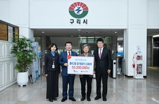 백경현 구리시장은 “초절전형 공기청정기로 전기료 부담 없이 사용할 수 있어 어려운 시민들에게 큰 도움이 될 것”이라며, “나눔문화를 위해 앞장서주시는 이오니스에 감사드린다.”라고 밝혔다.