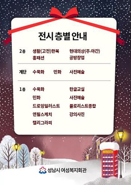 경기호연뉴스 민선기 기자 | 성남시는 오는 12월 5일부터 7일까지 사흘간 ‘여성복지회관(수정구 단대동 소재) 작품전시회’를 개최한다.