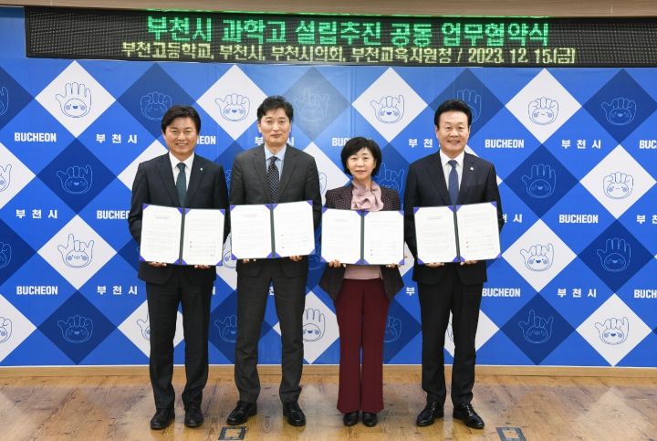 경기호연뉴스 김대엽 기자 | 부천교육지원청은 12월 15일 미래 인재 육성을 위한 기반을 조성하고 우수한 인재들이 성장할 수 있는 중요한 발판을 제공하고자 부천교육지원청-부천시청-부천시의회-부천고등학교 기관별 긴밀한 협력을 도모하는 ‘부천 과학고 설립 추진 MOU 체결’을 추진했다.