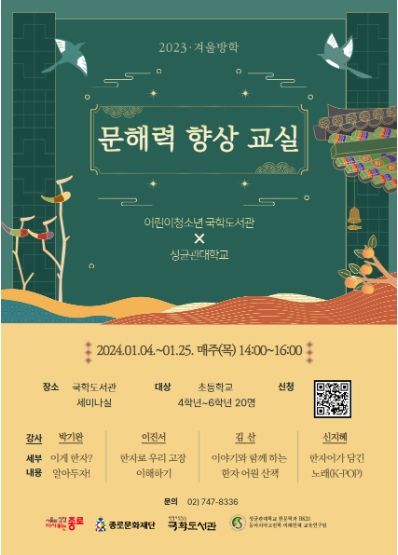 한편 이번 겨울방학 프로그램이 열리는 어린이청소년 국학도서관, 우리소리도서관은 각각 국학과 국악에 특화된 종로구 공공도서관이다.