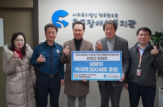 경기호연뉴스 김대엽 기자 | 동부경찰서 수성지구대 생활안전협의회는 지난 2월 1일 설 명절을 맞아 동구 장애인복지관을 방문하여 등록 장애인 300여 명을 위한 떡국떡을 전달했다.