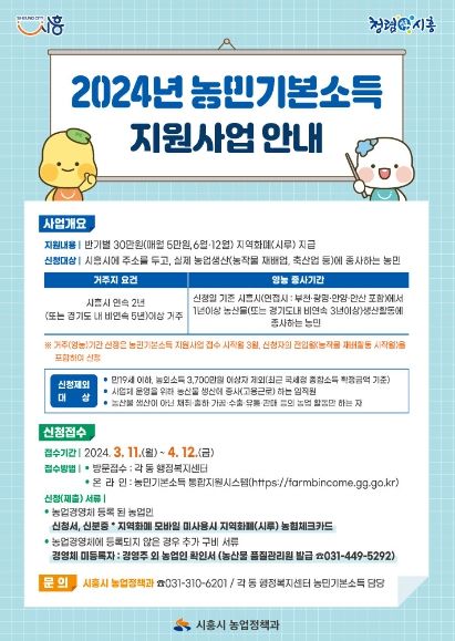 경기호연뉴스 김대엽 기자 | 시흥시는 오는 3월 11일부터 ‘2024년 농민기본소득 지원사업’의 신청을 받는다.