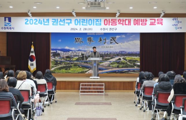 경기호연뉴스 김대엽 기자 | 수원시 권선구청은 지난 28일 권선구청 대회의실에서 관내 213개소 어린이집 보육 교직원을 대상으로 아동학대 예방 교육을 진행했다.