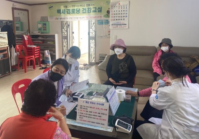 건강교실 주요 내용은 ▲만성질환 예방관리를 위한 기초검사(혈압, 혈당 등) 및 건강상담 ▲센터 사업 안내 ▲ 치매조기예방을 위한 검사예약 연계 등으로 참여를 원하는 주민은 날짜에 맞춰 해당 경로당에 방문하면 된다.