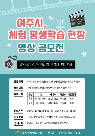 공모기간은 4월, 7월, 10월 중 1일부터 15일까지며, 영상 주제는 여주시 평생학습 현장에서 일어나는 활동 영상은 모두 가능하다. 자세한 사항은 여주시평생학습센터 홈페이지를 확인하거나 여주시 평생교육과 평생학습팀으로 문의하면 된다.