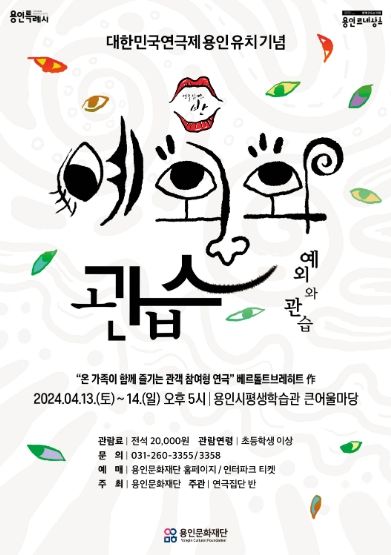 경기호연뉴스 김대엽 기자 | (재)용인문화재단은 오는 4월 13일, 14일 양일간 용인시평생학습관 큰어울마당에서 ‘대한민국연극제-용인’ 유치 기념 관객 참여형 연극 '예외와 관습'을 선보인다.