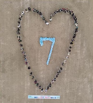 수거된 쓰레기는 총 120여 마대로 칠곡보생태공원에서 참여자 모두의 마음을 모아 하트모양의 정크아트로 제작했다.