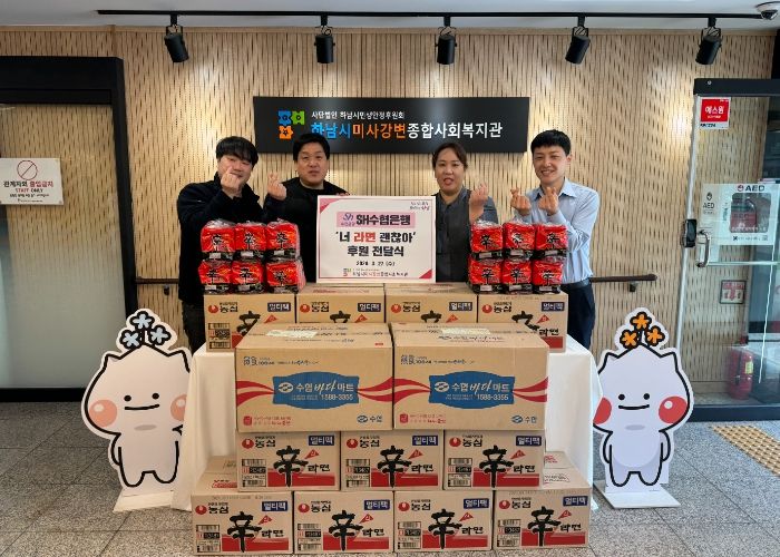 경기호연뉴스 김대엽 기자 | SH수협은행 미사역지점은 지난 27일 지역사회 내 취약계층 가구를 위해 라면과 미역을 하남시미사강변종합사회복지관에 전달했다.