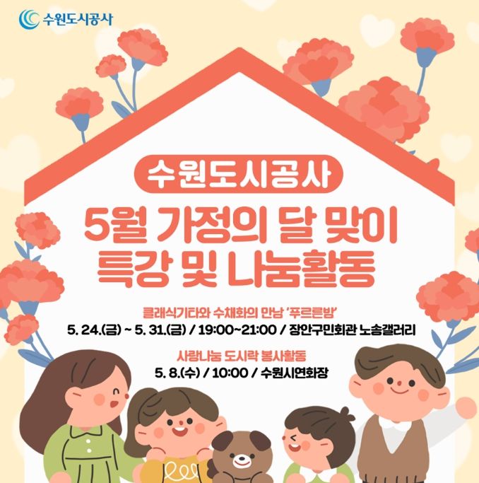 경기호연뉴스 민선기 기자 | 수원도시공사(사장 허정문)는 5월 가정의 달을 맞아 가족과 함께 즐길 수 있는 문화 행사와 소외계층을 위한 나눔 활동을 마련했다고 30일 밝혔다.