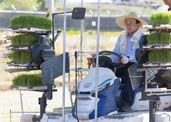 이날 김덕현 군수와 김성원 의원은 직접 이앙기를 운전하고 모내기를 시연했다. 이앙한 품종은 ‘연진(경기15호)’이다. ‘연진’은 연천의 연, 자연의 연을 뜻하며, 진은 보배진(珍)으로 연천(자연)의 보배, 진미(米), 귀한 맛을 뜻한다.