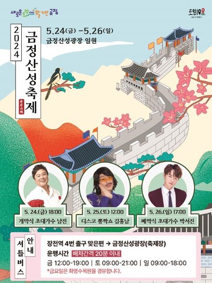 경기호연뉴스 민선기 기자 | 부산시 금정구와 금정구축제위원회가 주최하고, 금정문화재단이 주관하는 2024 금정산성축제가 오는 24일부터 26일까지 금정산성 및 금정산성광장 일원에서 개최된다.