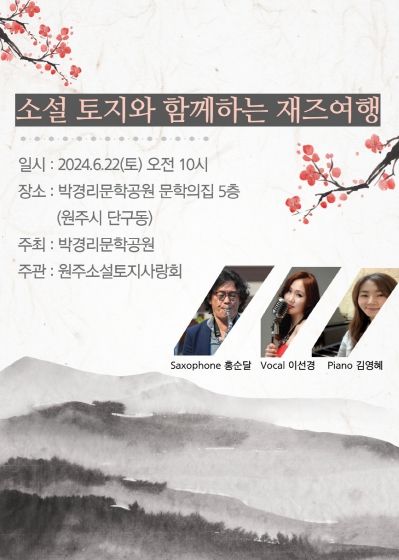 이번 행사는 원주소설토지사랑회에서 운영하는 ‘2024년 원주소설토지학교’ 수업과정 중 하나로, 본 회차에 한하여 박경리 작가의 소설 ‘토지’의 시대 배경부터 현재에 이르기까지 재즈 음악의 변천사를 선보인다.