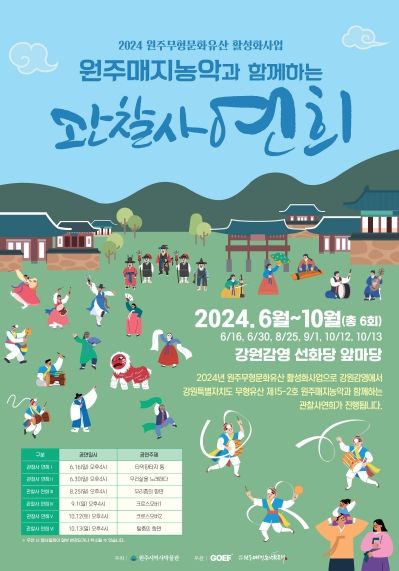 시 관계자는 “강원감영에서 펼쳐지는 이번 공연에서 삶의 희로애락을 노래하는 우리 음악을 만나보길 바라며, 공연 외에도 다양한 체험 활동들이 준비되어 있으니 강원감영을 방문하여 뜻깊은 시간을 보내시길 바란다.”고 전했다.