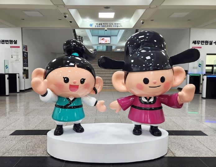 경기호연뉴스 민선기 기자 | 의정부시가 민선 8기 2주년을 기념해 청사 본관 1층 로비에 시 마스코트 ‘의돌이와 랑이’ 조형물을 설치했다.