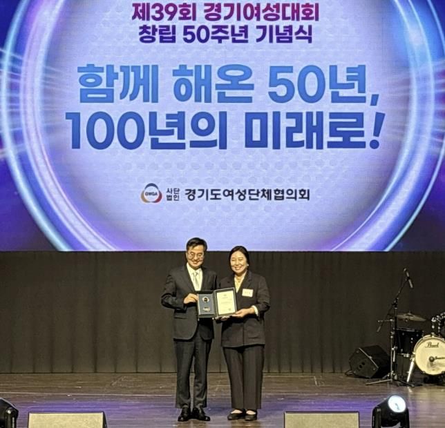 경기호연뉴스 민선기 기자 | 지난 7월 4일 경기아트센터에서 경기도 여성단체협의회 주관으로 개최한 ‘제39회 경기여성대회’ 기념식에서 여주시 여성단체협의회 정미정 지회장과 이미우 감사가 여성발전유공자로 선정되었다.