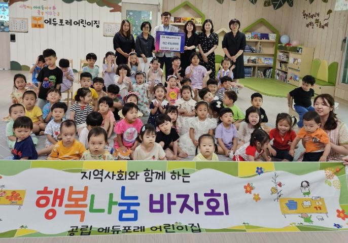 이번 기부금은 공립 에듀포레어린이집에서‘지역사회와 함께 하는 나눔바자회’행사를 통해 60명 원생이 십시일반 모은 정성으로, 작년에 이어 올해도 어려운 이웃들에게 뜻깊은 나눔을 실천하기 위해 수익금 전액을 기탁했다.