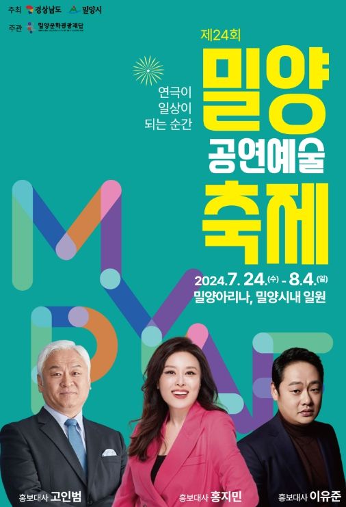 경기호연뉴스 민선기 기자 | 밀양시는 오는 24일부터 8월 4일까지 12일간 밀양아리나에서 개최되는 제24회 밀양공연예술축제를 대한민국 대표연극축제라는 명성에 걸맞게 준비하고 있다고 밝혔다.