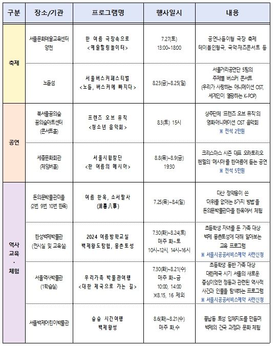 더 자세한 서울시 여름방학 추천 행사 내용은 [서울문화포털 누리집→ 새소식]을 확인하면 된다.