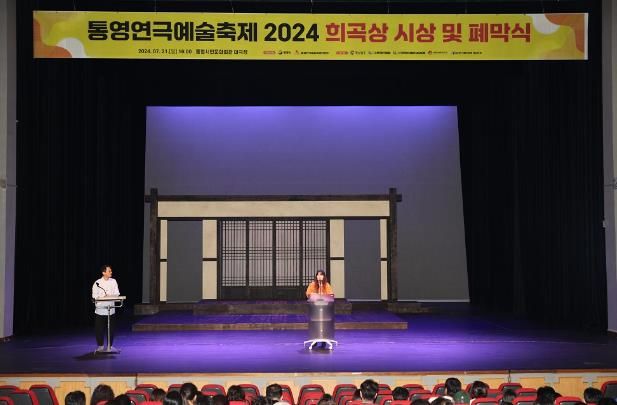 폐막식에는 폐막작 공연과 문화 콘테츠상 및 장현 연극인상 수여, ‘2024 통영연극예술축제 희곡상’ 시상식 순으로 진행됐으며, 대극장을 찾은 많은 관객들이 배우들과 수상자에게 박수와 환호를 보내며 연극제의 마무리를 함께 했다.