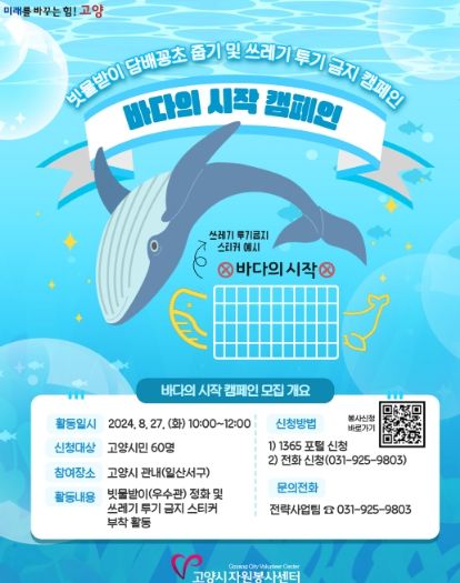 올해 상반기에 고양시자원봉사센터에서는 ‘저탄소 V-마라톤 3기’데이터 플로깅을 운영해 406명의 참여자가 38,746개의 다양한 종류의 쓰레기와 데이터를 수거·수집한 바 있다. 수집 결과 담배꽁초가 29,059개로 75%를 차지했으며, 이를 바탕으로 그 심각성을 알리고자 하는 활동의 연장선으로 ‘바다의 시작’ 캠페인이 기획됐다.