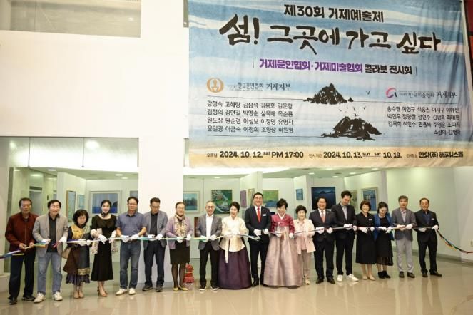 거제예술제 식전행사에는 한화오션 해피니스홀에서 문인협회와 미술협회의 콜라보전시인 시화, 미술전시 컷팅식과 거제예총이 걸어온 지난 30년간의 사진영상을 감상하는 시간도 가졌다.