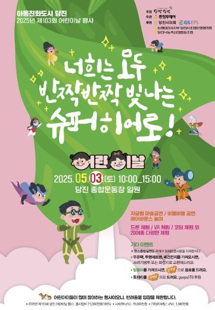 경기호연뉴스 민선기 기자 | 당진시는 제103회 어린이날을 맞아 오는 5월 3일 오전 10시부터 오후 3시까지 당진종합운동장에서 '2025년 제103회 당진시 어린이날 행사'를 개최한다고 30일 밝혔다.