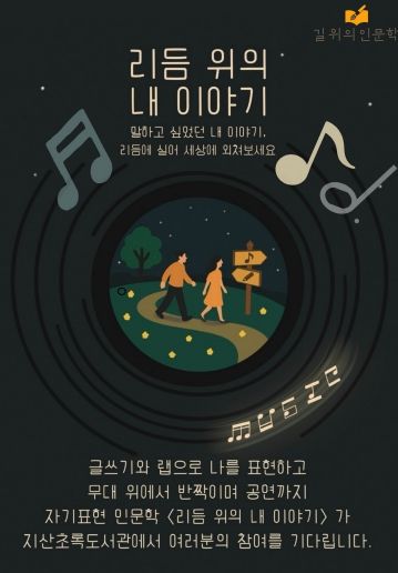 이번 공모에 선정된 프로그램은 《리듬 위의 내 이야기》로, 오는 6월 11일부터 9월 20일까지 총 15회에 걸쳐 운영된다. 참여자들은 자전적 이야기를 글로 쓰고, 이를 랩 가사로 바꾸어 녹음과 공연까지 진행하는 창작형 인문 프로그램에 참여하게 된다.