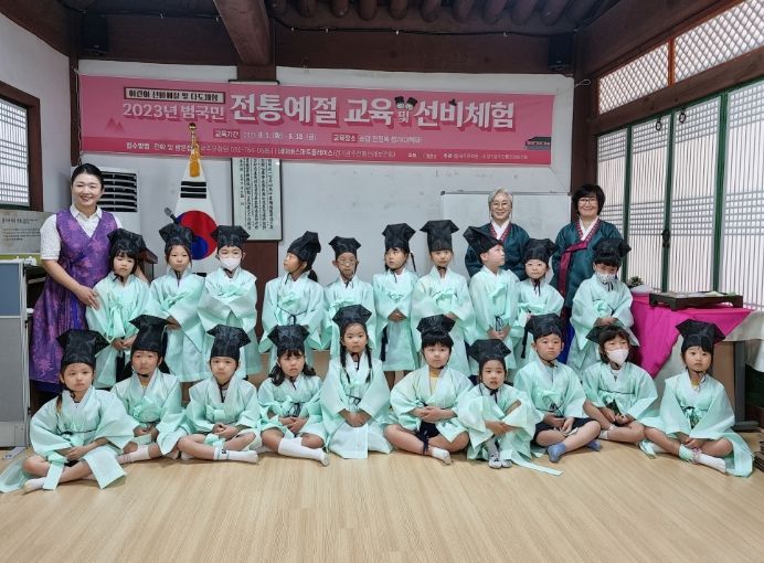 경기호연뉴스 김대엽 기자 | (사)경기광주전통전례보전회는 광주시 중대동에 소재한 안정복 선생 사당 이택재에서 2023년 8월1일부터 8월18일까지 관내 초등학교 및 유치원생들을 대상으로 “범국민 전통예절교육 및 선비체험” 교육을 실시했다.
