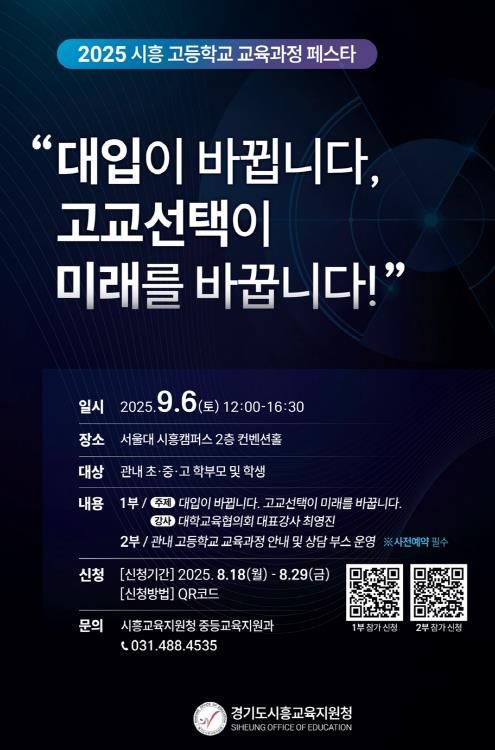 경기도시흥교육지원청은 앞으로도 지역 학생들의 성장을 적극 지원하고, 학부모와 함께하는 교육 공동체 실현을 위해 다양한 진로·진학 지원 프로그램을 운영할 계획이다.