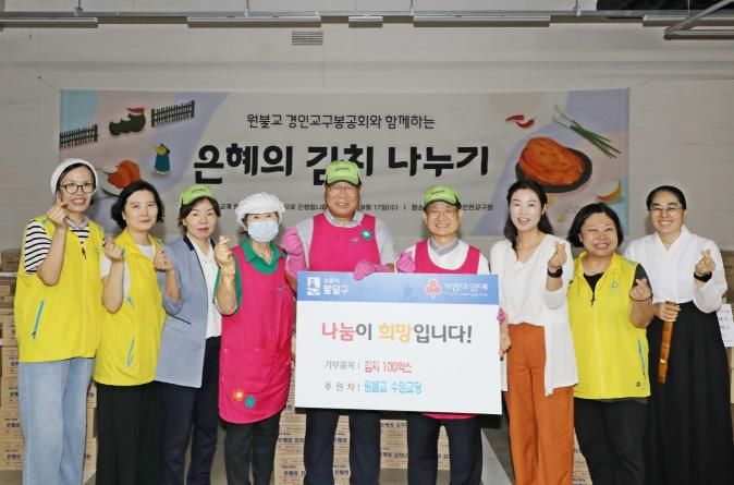 경기호연뉴스 민선기 기자 | 원불교 수원교당은 지난 17일, 수원시 팔달구(구청장 이상균)에 김치 100박스를 기부했다.