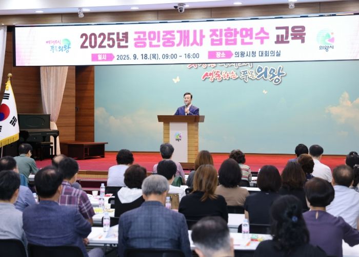 경기호연뉴스 민선기 기자 | 의왕시는 9월 18일 시청 대회의실에서 관내 공인중개사 120명이 참석한 가운데 ‘2025년 공인중개사 집합 연수 교육’을 개최했다.