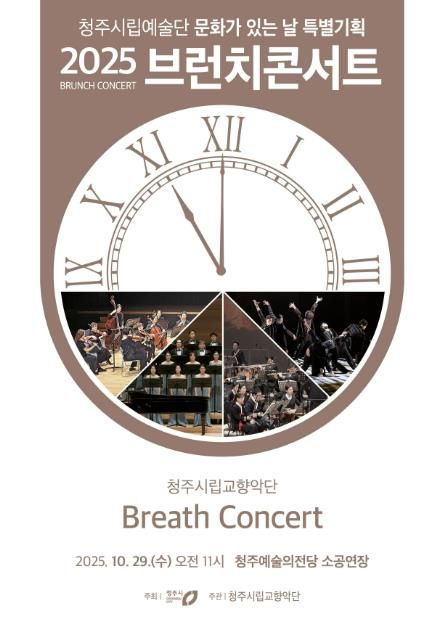 경기호연뉴스 민선기 기자 | 청주시립교향악단은 오는 29일 오전 11시 청주예술의전당 소공연장에서 ‘브런치콘서트–Breath Concert’를 공연한다.