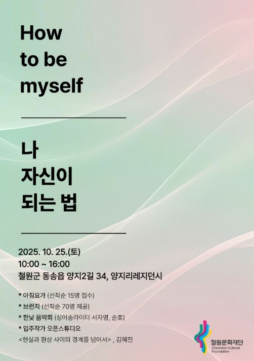 경기호연뉴스 민선기 기자 | 철원문화재단은 2025년 10월 25일 오전 10시부터 16시까지 양지리 레지던시를 개방해 웰니스 문화행사를 진행한다.