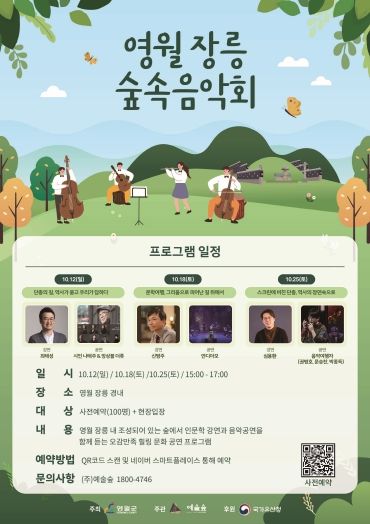 경기호연뉴스 민선기 기자 | 영월군은 오는 10월 12일, 18일, 25일 오후 3시부터 5시까지 세계유산 장릉 경내에서 ‘영월 장릉 숲속 음악회’를 개최한다.