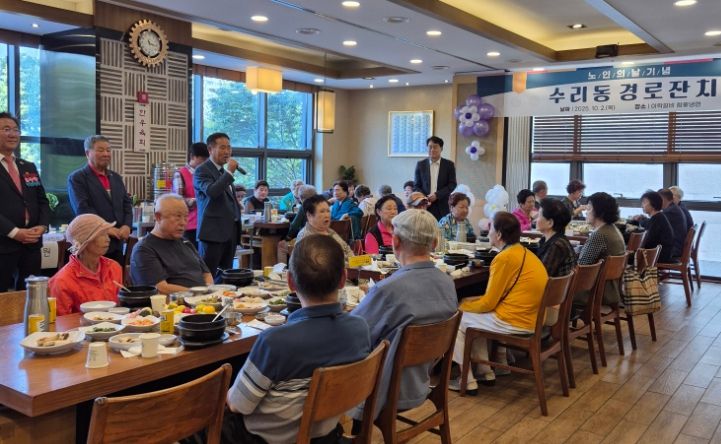 경기호연뉴스 민선기 기자 | 군포시 수리동 주민자치회(회장 고진해)는 제29회 노인의 날을 맞아 지난 10월 2일 수리동 어르신들을 대상으로 경로잔치를 개최했다. 이번 행사는 하은호 군포시장, 이학영 국회부의장 등 여러 내빈과 수리동 직능단체장들이 어르신 100여 명과 뜻깊은 자리를 함께했다.