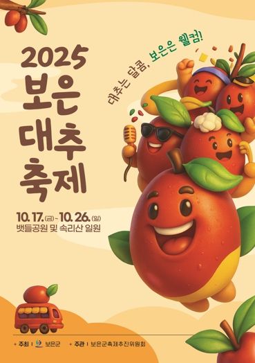 경기호연뉴스 민선기 기자 | 보은군은 17일부터 26일까지 열흘간 열리는 ‘2025 보은대추축제’에서 콜센터(☏1670-6114)를 운영해 관광객들에게 축제에 대한 궁금증을 해결해 준다고 밝혔다.