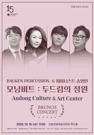 경기호연뉴스 민선기 기자 | 안동문화예술의전당은 매월 둘째 주 수요일, 클래식 애호가들을 위한 감성 콘서트 시리즈인 ‘브런치 콘서트’를 꾸준히 선보이며 지역 문화 활성화에 앞장서고 있다. 10월의 브런치 콘서트, '모닝비트: 두드림'이 오는 10월 15일 오전 11시, 안동문화예술의전당 백조홀에서 열린다.