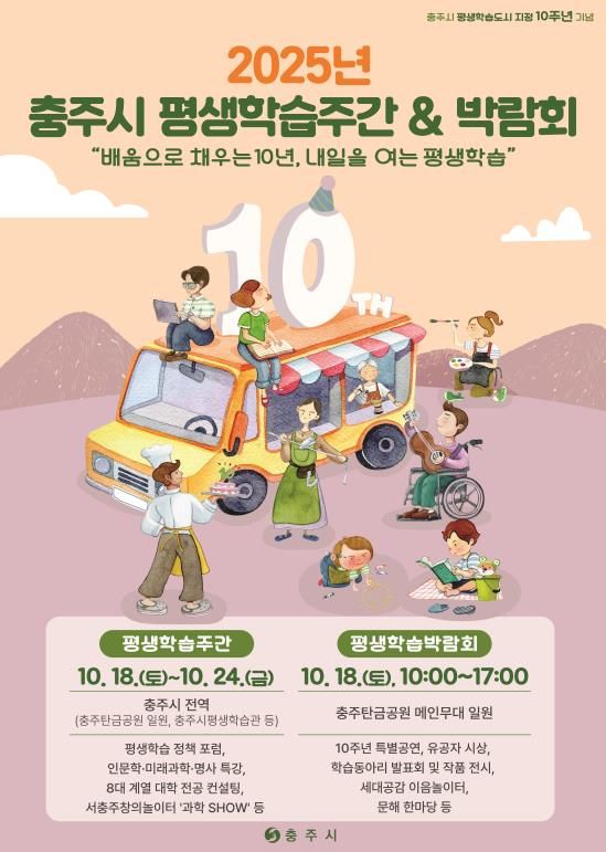 경기호연뉴스 민선기 기자 | 충주시는 평생학습도시 지정 10주년을 맞아 오는 18일부터 24일까지 '2025년 충주시 평생학습주간'을 개최한다고 14일 밝혔다.