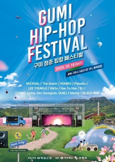 경기호연뉴스 민선기 기자 | 구미시는 오는 10월 18일 동락공원에서 청춘들의 열정과 힙합 음악이 어우러지는 '2025 구미청춘힙합페스티벌'을 개최한다. 이번 공연은 오후 3시 30분부터 밤 10시까지 진행되며, 전석 무료(스탠딩존)로 선착순 입장할 수 있다.