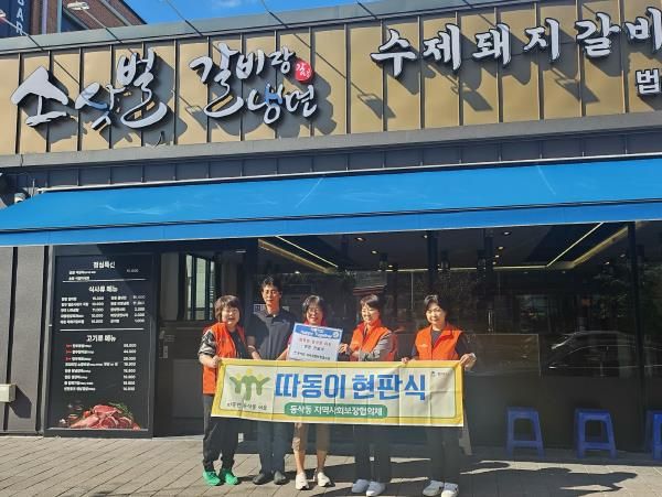 경기호연뉴스 민선기 기자 | 평택시 동삭동 지역사회보장협의체는 지난 15일 관내 취약계층 10가구에 월 2회 정기적으로 5가지 밑반찬을 지원할 예정인 소삿벌 법원직영점에 ‘따동이’ 5호점 현판을 전달했다.