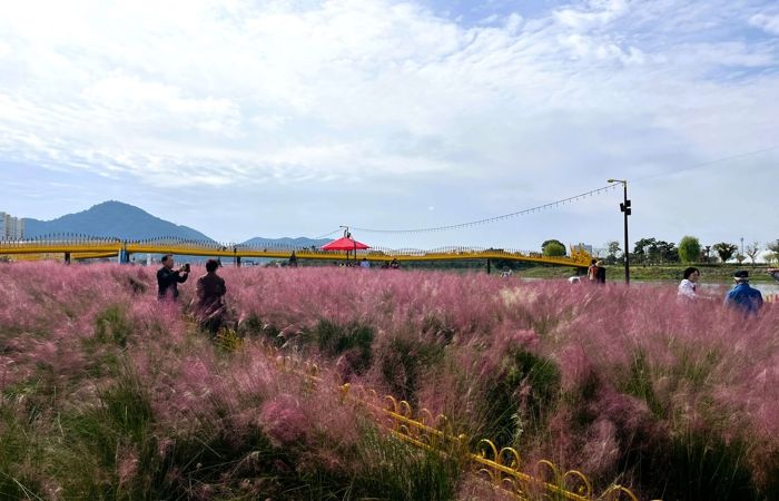 경기호연뉴스 민선기 기자 | 장성군 황룡강 가을꽃축제 이튿날인 19일, 강변 곳곳마다 활짝 핀 가을꽃들이 방문객을 반기고 있다. 특히 용작교, 황룡정원 방면 백일홍과 연꽃정원 코스모스, 문화대교 인근 핑크뮬리가 아름답다.