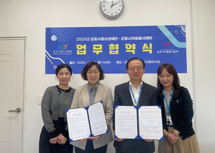 경기호연뉴스 민선기 기자 | 군포시청소년재단은 10월 20일 군포시청소년재단 대표이사실에서 군포시자원봉사센터와 지역사회 상생 및 자원봉사 활성화를 위한 업무협약을 체결했다.