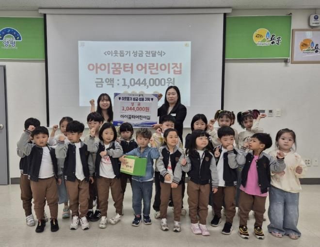 경기호연뉴스 민선기 기자 | 양평군 용문면은 지난 20일 용문면 소재 아이꿈터 어린이집이 주최한 ‘소소한 기쁨, 특별한 만남, 행복 나눔 작은 장터’ 바자회를 통해 마련된 수익금 1,044,000원을 용문면에 기탁했다고 밝혔다.