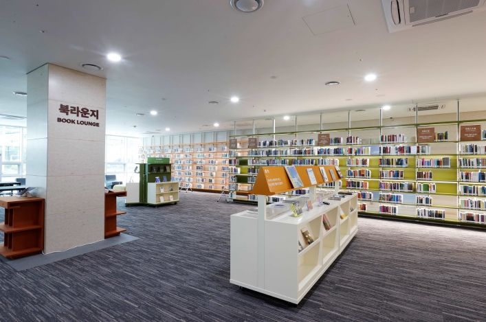 도서관 방문객들이 가장 많이 찾는 문학 도서는 접근이 용이하도록 1층 ‘북 라운지’에 비치돼 있다. 지역 서점과의 협력을 위한 지역서점 큐레이션과 책방지기의 편지 코너도 운영한다.