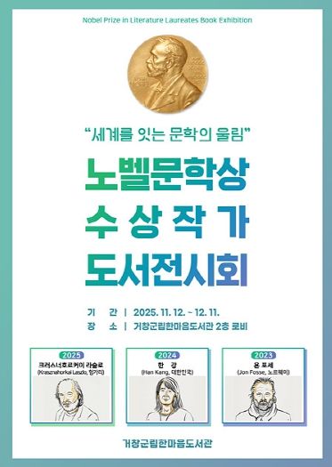 경기호연뉴스 민선기 기자 | 거창군은 2025년 노벨문학상 발표를 기념하여 군민들의 높아진 문학적 관심을 반영하고 세계문학의 흐름을 조명하기 위해 오는 12일부터 12월 11일까지 한 달간 한마음도서관에서 ‘노벨문학상 수상 작가 도서 전시회’를 개최한다.