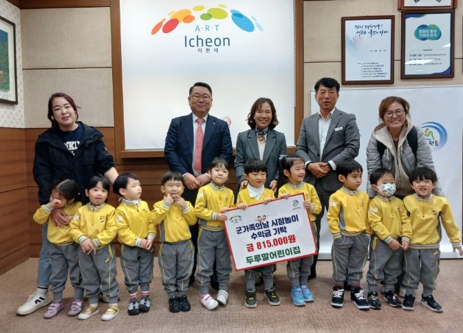경기호연뉴스 민선기 기자 | 이천시 장호원읍 두루말어린이집은 11월 11일, 어린이들과 함께 장호원읍행정복지센터에 방문해 군가족의 날 아나바다 시장놀이 행사의 수익금 815,000원을 전달했다.