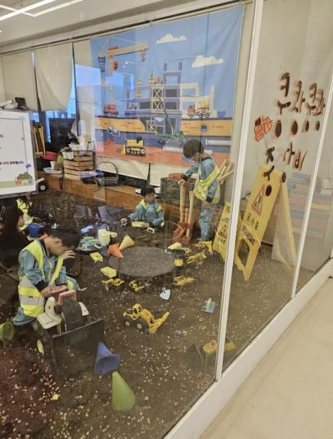 영유아들은 댜앙한 색의 물감으로 유리벽 그림 그리기, 중장비 놀이, 할로윈 체험, 실내놀이터에서의 신체활동 등 여러 프로그램에 참여하며 즐거운 시간을 보냈다.