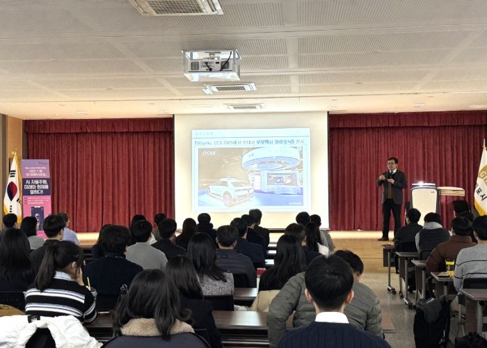 강연 후반부에서는 자율주행의 핵심기술과 미래 대응전략에 대한 견해를 제시했다. 이 소장은 컴퓨터 모듈·지능형 센싱 등 주요 기술요소를 설명하며, “인공지능 자율주행 산업이 나아가야 할 3가지 핵심 방향으로 누구나 활용할 수 있는 공용 산업 플랫폼 구축이 필요하며, 국제표준에 부합하는 기술 안전성 및 보안성 확보, 그리고 실증사업을 통한 사회적 수용성 확보와 공감대 형성이 중요하다”고 강조하며 강연을 마무리 했다.