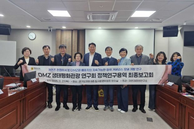 경기호연뉴스 민선기 기자 | 경기도의회 의원연구단체인 DMZ생태평화관광 연구회(회장 오준환 의원)는 지난 27일 경기도의회 도시환경위원회 회의실에서 '커먼즈 관점에서 본 DMZ와 배후지의 지속가능한 협력 거버넌스 모델 개발 연구' 용역 최종보고회를 개최했다.