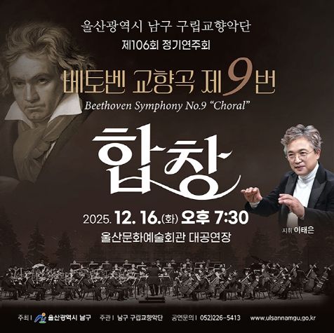 경기호연뉴스 민선기 기자 | 울산 남구 구립교향악단(지휘자 이태은)은 16일 오후 7시 30분, 울산문화예술회관 대공연장에서 ‘2025 송년음악회’를 열고 한 해를 마무리하는 품격 높은 클래식 무대를 선보인다.